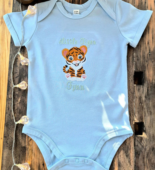 Bestickter Babybody LITTLE TIGER mit Personalisierung | kurzarm