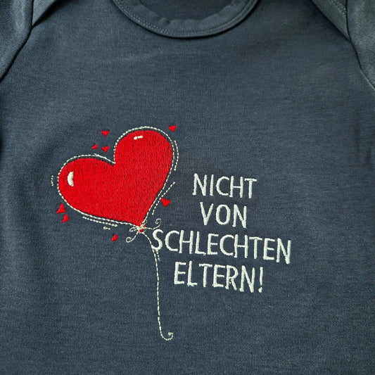 Bestickter Babybody NICHT VON SCHLECHTEN ELTERN mit Personalisierung | kurzarm