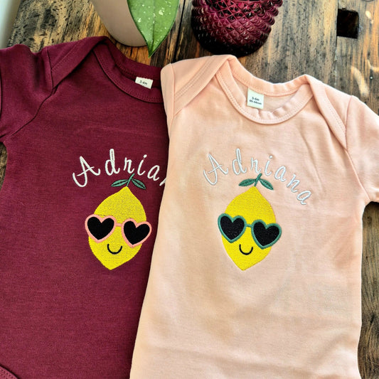 Bestickter Babybody personalisiert mit Zitrone & Wunschname | Geschenk zur Geburt | kurzarm